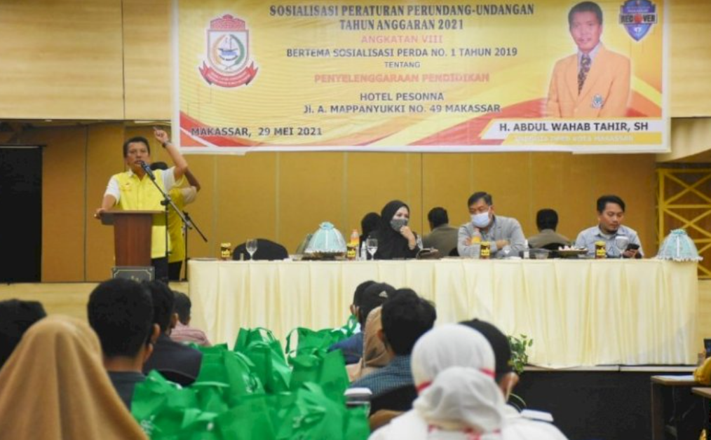 MAKASSAR,MENARAINDONESIA.com-Anggota Dewan Perwakilan Rakyat Daerah (DPRD) Kota Makassar, Abd Wahab Tahir, menggelar sosialisasi Peraturan Daerah (Perda) Kota Makassar nomor 1 tahun 2019 tentang Penyelenggaraan Pendidikan di Hotel Pesonna Makassar, Sabtu (29/05/2021).