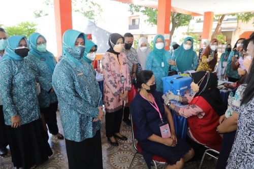 MAKASSAR,MENARAINDONESIA.com-Ketua Tim Penggerak PKK Kota Makassar, Indira Jusuf Ismail, melaunching pelayanan vaksinasi Covid-19 bagi ibu hamil di kota Makassar. dan dilakukan secara simbolis di puskesmas Tamalate, Kamis (02/09/2021).