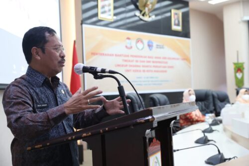 MAKASSAR,MENARAINDONESIA.com-Sekretaris Daerah Kota Makassar yang juga selalu Penasihat Dharma Wanita Persatuan (DWP) Kota Makassar, Muh. Ansar, serahkan bantuan pendidikan bagi anak ASN Gol I dan Anak ASN Gol II yang berprestasi tingkat SD dan SMP lingkup unit kerja DWP se kota Makassar.
