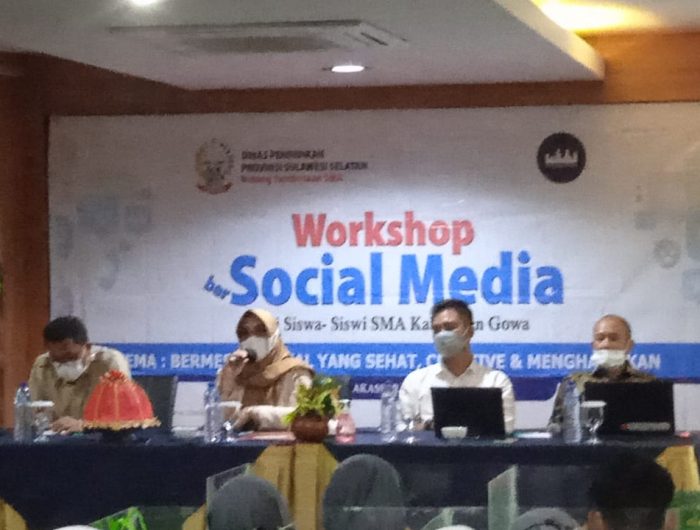 MAKASSAR,MENARAINDONESIA.com-Dinas Pendidikan (Disdik) Provinsi Sulawesi-Selatan (Sulsel) menggelar Kegiatan Workshop Bermedia Sosial untuk siswa dan siswi Sekolah Menengah Atas (SMA) se Kabupaten Gowa, di Hotel LYNT Jalan Letjen Hertasning No. 62 Kota Makassar, Selasa (23/11/2021).