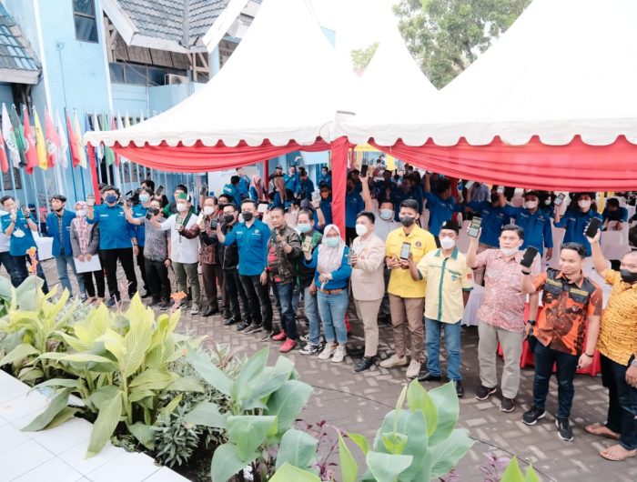 Secara serentak dipandu Ketua DPD KNPI Kota Makassar Hasrul Kaharuddin, peserta melakukan pengunduhan aplikasi Ajamma di akhir dialog Kemitraan Anggota DPRD Makassar dan Masyarakat dengan tema “Efektifitas Penyampaian Aspirasi Secara Daring”.