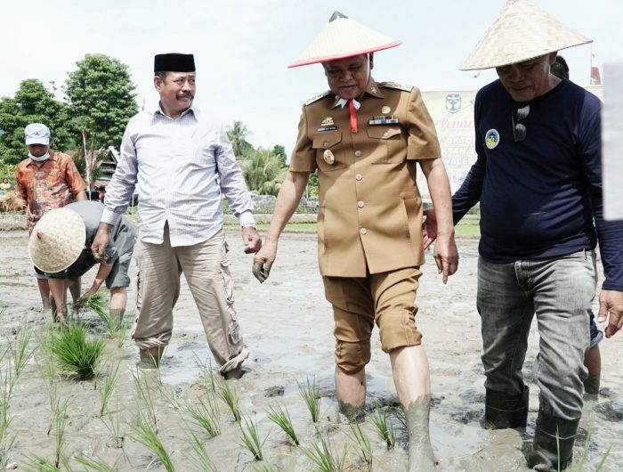 LUWU,MENARAINDONESIA.com-Bupati Luwu, Dr H Basmin Mattayang didampingi Ketua DPRD Luwu, Rusli Sunali melakukan penanaman padi di Desa Rantai Damai Kecamatan Walenrang Timur, Senin (31/01/2021).