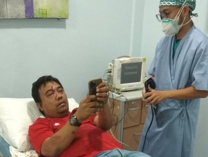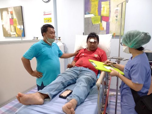 Dalam kiriman foto yang diterima Menara Indonesia, Haris Pertama yang menggunakan Jersy Timnas Indonesia, terlihat babak belur dan mengeluarkan darah disekitar pelipis.