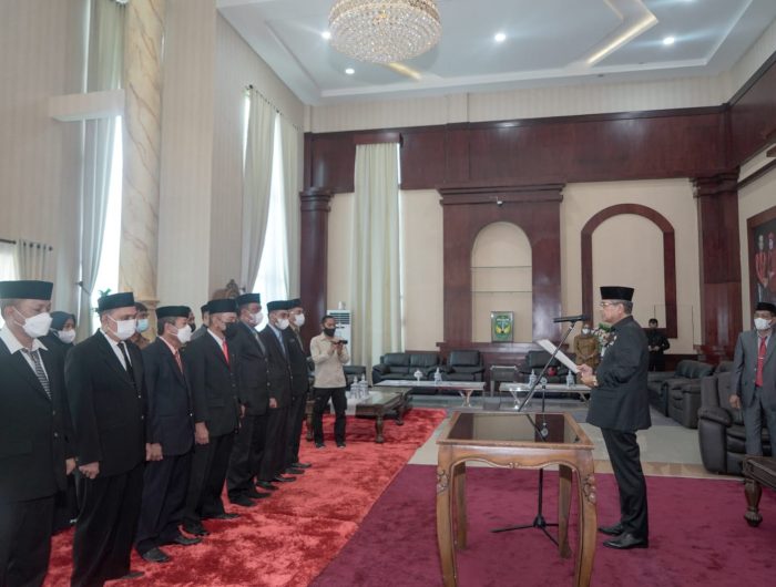 LUWU,MENARAINDONESIA.com–Bupati Luwu, Dr H Basmin Mattayang melantik dan mengambil sumpah Jabatan Pimpinan Tinggi Pratama, Administrator Pengawas, Kepala Puskesmas dan Kepala Sekolah lingkup Pemerintah Kabupaten Luwu, di aula Rumah Jabatan Bupati Luwu, Kelurahan Pammanu Kecamatan Belopa Utara, Selasa (26/04/2022).