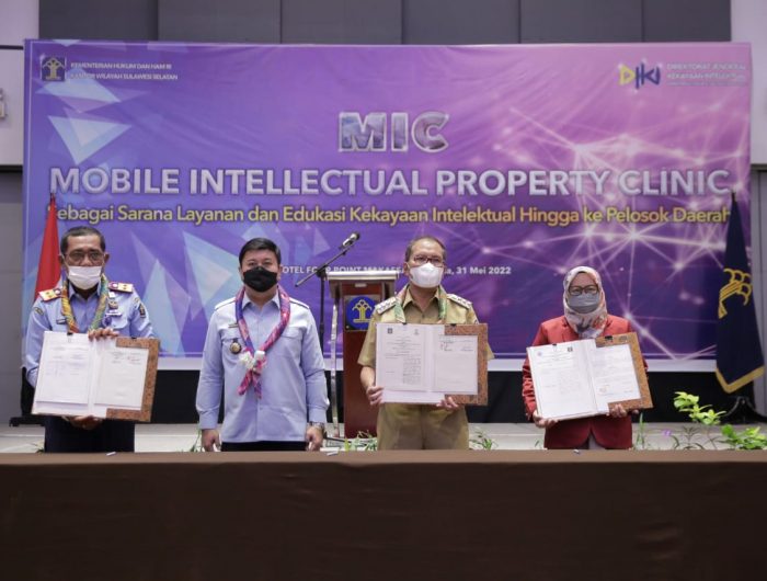 Penandatangan kerjasama terkait Mobile Intellectual Property Clinic, Karya Intelektual, dimaksudkan untuk melindungi berbagai inovasi serta hak cipta dan karya anak bangsa agar memiliki kejelasan serta kepastian hukum.