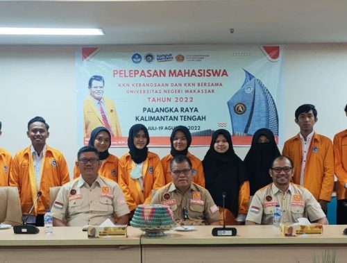 MAKASSAR,MENARAINDONESIA.com-Rektor Universitas Negeri Makassar (UNM) melepas secara simbolik Mahasiswa Kuliah Kerja Nyata (KKN) Kebangsaan yang akan ditempatkan di Kalimantan Tengah – Palangka Raya, Jum’at (15/07/2022) di gedung Pinisi Lt 7 UNM.