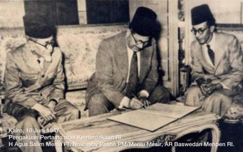 Pada 10 Juni 1947, dokumen pengakuan ditandatangani oleh Perdana Menteri sekaligus Menlu Mesir Nokrashy Pasha. Negara Mesir menjadi negara pertama yang mengakui kemerdekaan Indonesia.