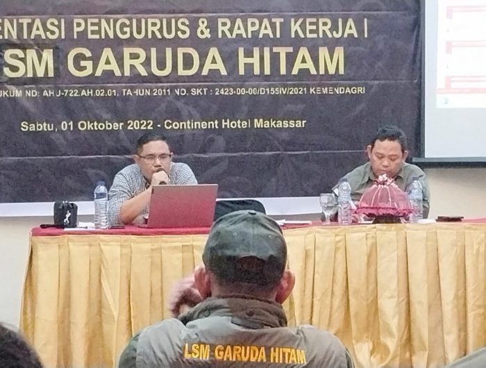 MAKASSAR,MENARAINDONESIA.com-Lembaga Swadaya Masyarakat (LSM) Garuda Hitam menggelar kegiatan Orientasi Pengurus dan Rapat Kerja I di Hotel Continent, Jalan Adhyaksa, Kota Makassar pada Sabtu (01/10/2022). Kegiatan tersebut diikuti oleh seluruh pengurus dan anggota dari LSM Garuda Hitam yang ada Sulawesi Selatan (Sulsel).