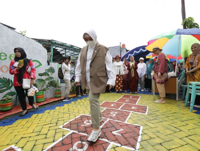 Saat melakukan kunjungan, Sri Suparni bersama rombongan, bahkan menyempatkan diri bermain dende-dende, salah satu permainan tradisional yang ada di Lorong PKK.