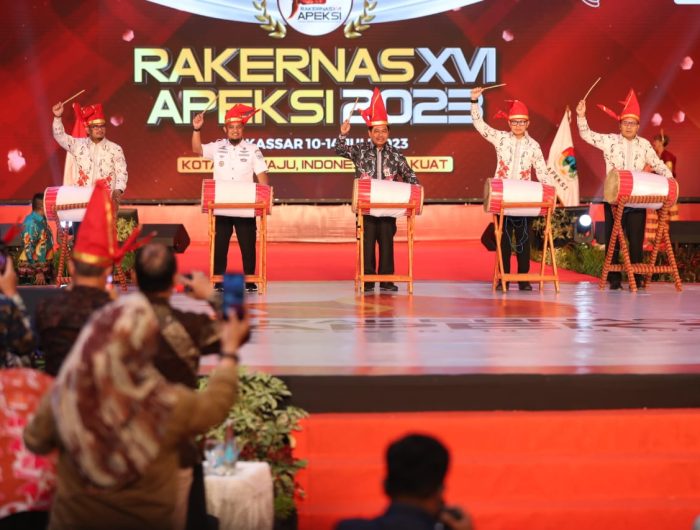 MAKASSAR,MENARAINDONESIA.com-Rapat Kerja Nasional (Rakernas) Asosiasi Pemerintah Kota Seluruh Indonesia (APEKSI) XVI Tahun 2023 resmi dibuka di Kota Makassar, Sulawesi Selatan. Acara pembukaan dilaksanakan di Upperhills Convention Center, Rabu (12/07/2023).