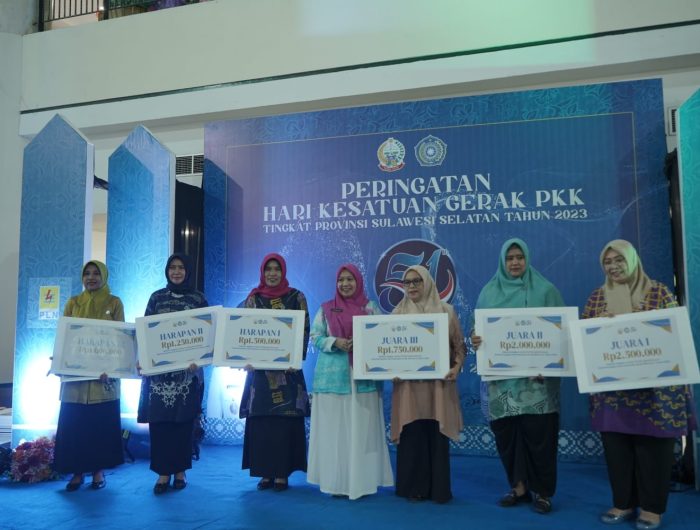 Penyerahan penghargaan juara berlangsung di Atrium Mall Panakkukang Makassar, Minggu (30/07/2023) pada penutupan pameran rangkaian Peringatan HKG PKK tersebut yang telah berlangsung sejak Jumat (28/07/2023).