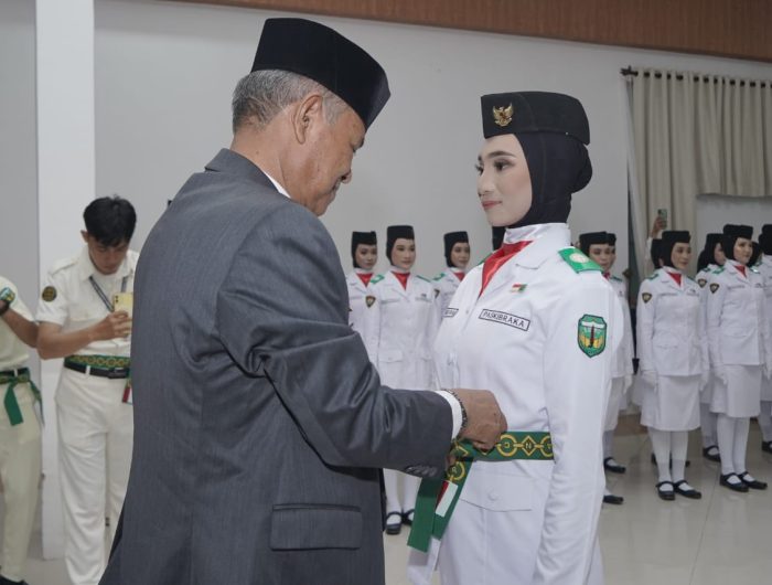 LUWU,MENARAINDONESIA.com-Bupati Luwu, Dr. Drs. H. Basmin Mattayang, MPd mengukuhkan 71 anggota Pasukan Pengibar Bendera Pusaka (Paskibraka) dalam rangka peringatan Hari Ulang Tahun Ke – 78 Kemerdekaan Republik Indonesia tingkat Kabupaten Luwu.