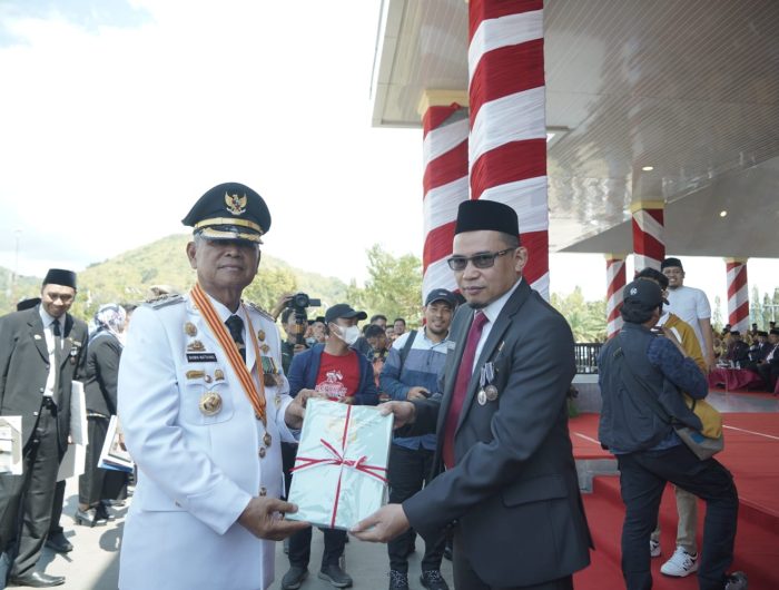 LUWU,MENARAINDONESIA.com-Bupati Luwu, Dr. Drs. H Basmin Mattayang, MPd menyerahkan piagam penghargaan dan hadiah kepada pemenang lomba inovasi daerah antar Organisasi Perangkat Daerah (OPD) dan Puskesmas se Kabupaten Luwu tahun 2023, usai melaksanakan upacara peringatan detik-detik proklamasi dalam rangka Hari Ulang Tahun (HUT) ke-78 Kemerdekaan Republik Indonesia yang dilaksanakan di lapangan Andi Djemma Kelurahan Senga Kecamatan Belopa, Kamis (17/08/2023).