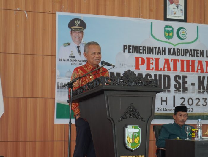 LUWU,MENARAINDONESIA.com-Dalam rangka meningkatkan Kapasitas Imam Masjid, Pemerintah Kabupaten Luwu bekerjasama dengan Pengurus Ittihad Persaudaraan Imam Masjid (IPIM) menyelenggarakan Pelatihan Imam Masjid se Kabupaten Luwu di aula Andi Kambo, Kompleks Perkantoran Bupati Luwu, Kamis (28/12/2023).
