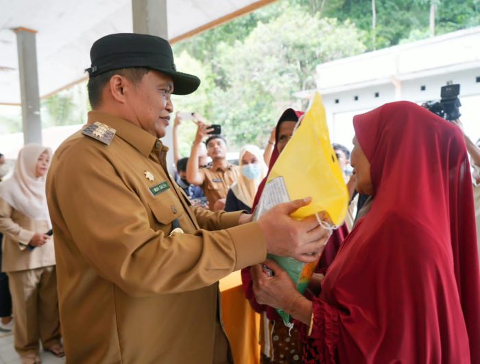 Pada kesempatan tersebut, Pj Bupati secara simbolis menyerahkan beras kepada perwakilan masyarakat sebagai tanda dimulainya Gerakan Pangan Murah di Kecamatan Latimojong.