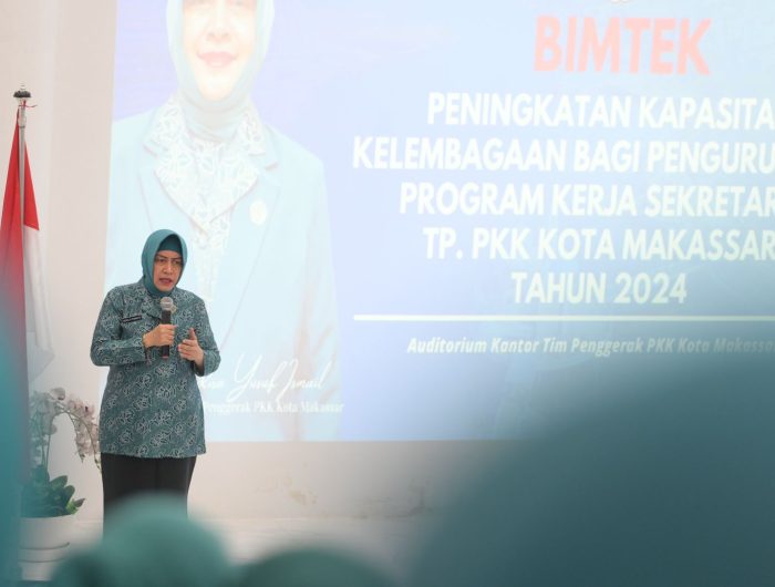 MAKASSAR,MENARAINDONESIA.com-Ketua TP PKK Kota Makassar Indira Jusuf Ismail membuka Bimtek Peningkatan Kapasitas Kelembagaan bagi Pengurus PKK Kota Makassar di Auditorium Kantor TP PKK Kota Makassar, Senin (22/04/2024).